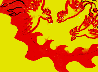 The Fire Birds Sun Ray was so excited that he took out his magic fiddle and started to play it. All the Fire Birds came and flew in a Sun Circle. Eagle Child shouted "my wings feel powerful again." Return to the Dragon Ship