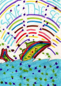 | "Love the Water" Poster "Love the Water" - "Earth Action" p 18 Think of all the fish, plant and creature of the sea that need protection.Sweetwater knows the water covers 70% of the earth and we must take care of it. Draw a "Save the Water" poster. Patrick O'Connor, Annmarie Lowe & P.H. are the artists.These posters are from Archbishop Illsley School Birmingham. Della worked with the students at the school doing Art.   Return to the Giant Flower | | | | |